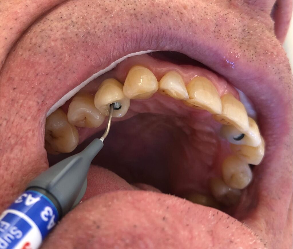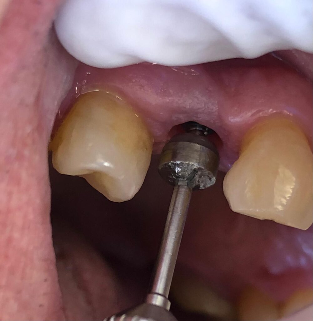 Una vez que la oseointegración se ha completado y el implante está perfectamente anclado, es momento de colocar la corona. En el caso de nuestro paciente, utilizamos coronas de zirconio para el incisivo lateral y el primer premolar. Este material no solo es increíblemente duradero, sino que también ofrece una estética superior, imitando a la perfección el color y la translucidez de un diente natural.